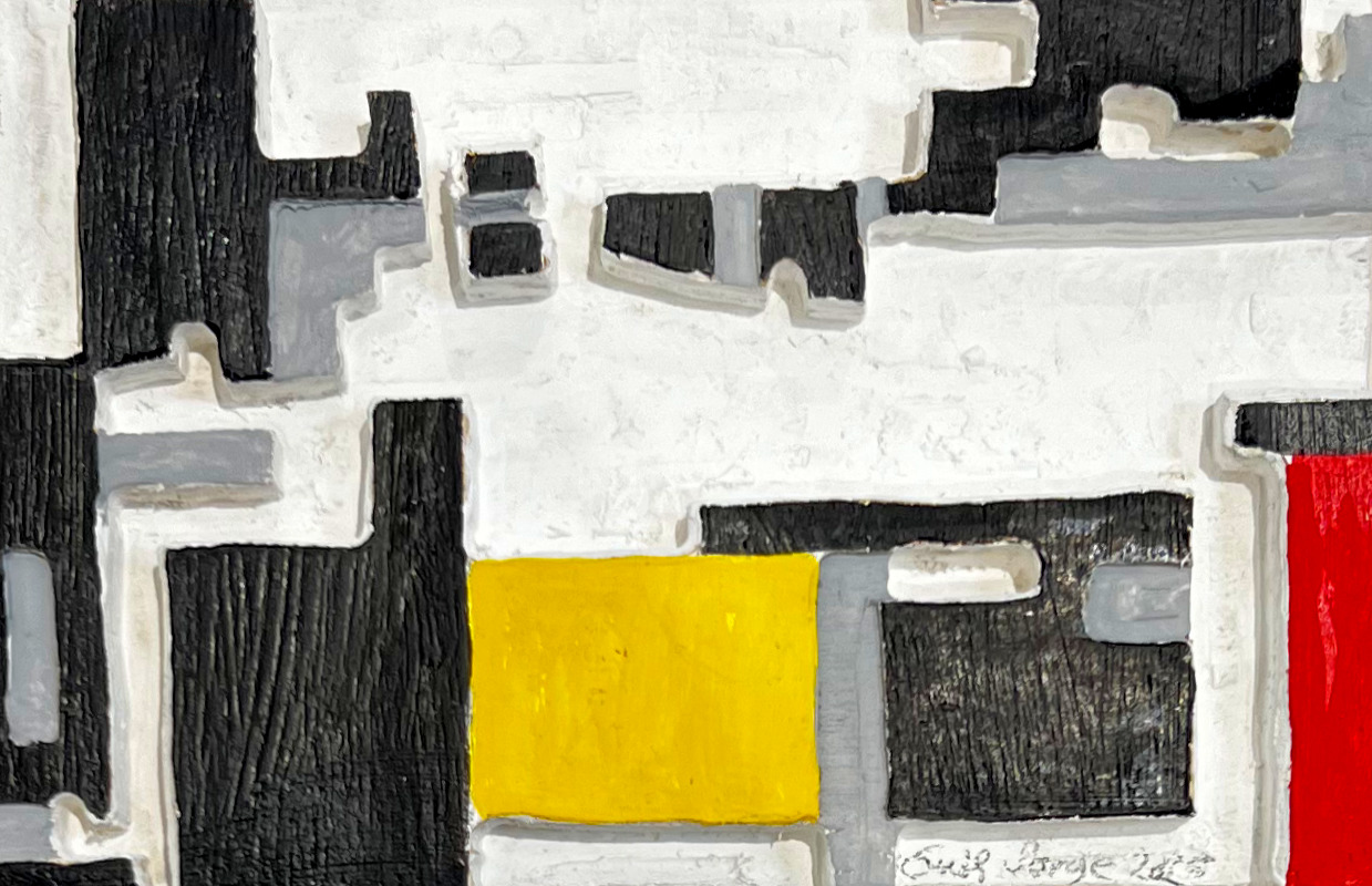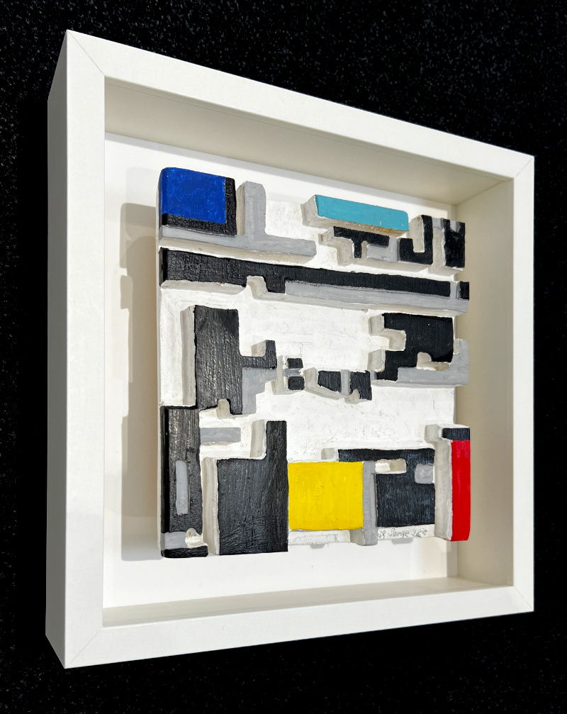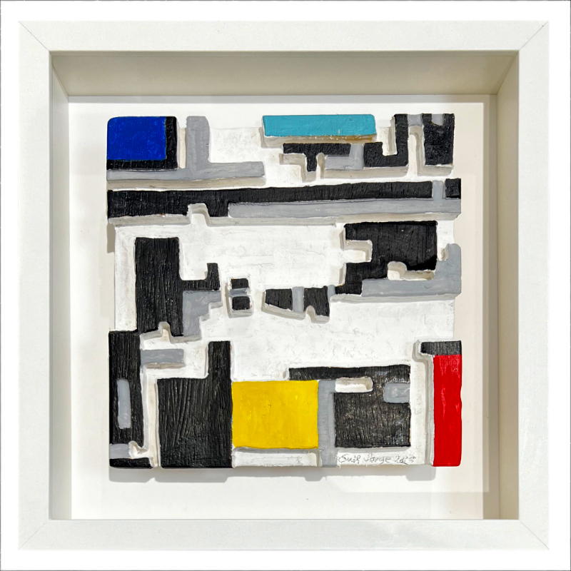 Holzschnitt, farbig gefasst und als Objekt gerahmt