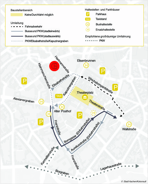Unsere Galerie ist aktuell mit dem PKW anders, aber weiterhin problemlos erreichbar: von der Franzstraße fahren Sie in die Kleinmarschierstraße, biegen direkt rechts in die Elisabethstraße (die dortige Einbahnstraße wird umgekehrt) und dann links in die Hartmannstraße ab. Verlassen können Sie die Hartmannstraße dann in Richtung Kapuzinergraben.